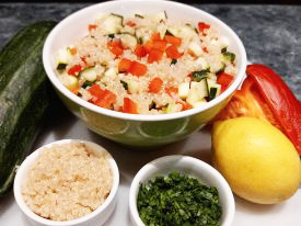 - Lavar 2cdas. de quinoa en un colador de malla fina (al cocerse se duplica su tamaño al doble) dejar correr el chorro de agua mientras la revuelves para que salga las impurezas. Luego en una olla pequeña agregar 2tza de agua y cocinar la quinoa, durante 20min. 👀 Se debe vigilar que no se evapore el agua. Una vez blandita colar... esperar que se enfríe y listo.